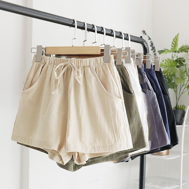 High Waist Cotton Linen Shorts Loose Casual Hot Pants Large Size Thin Wide Leg